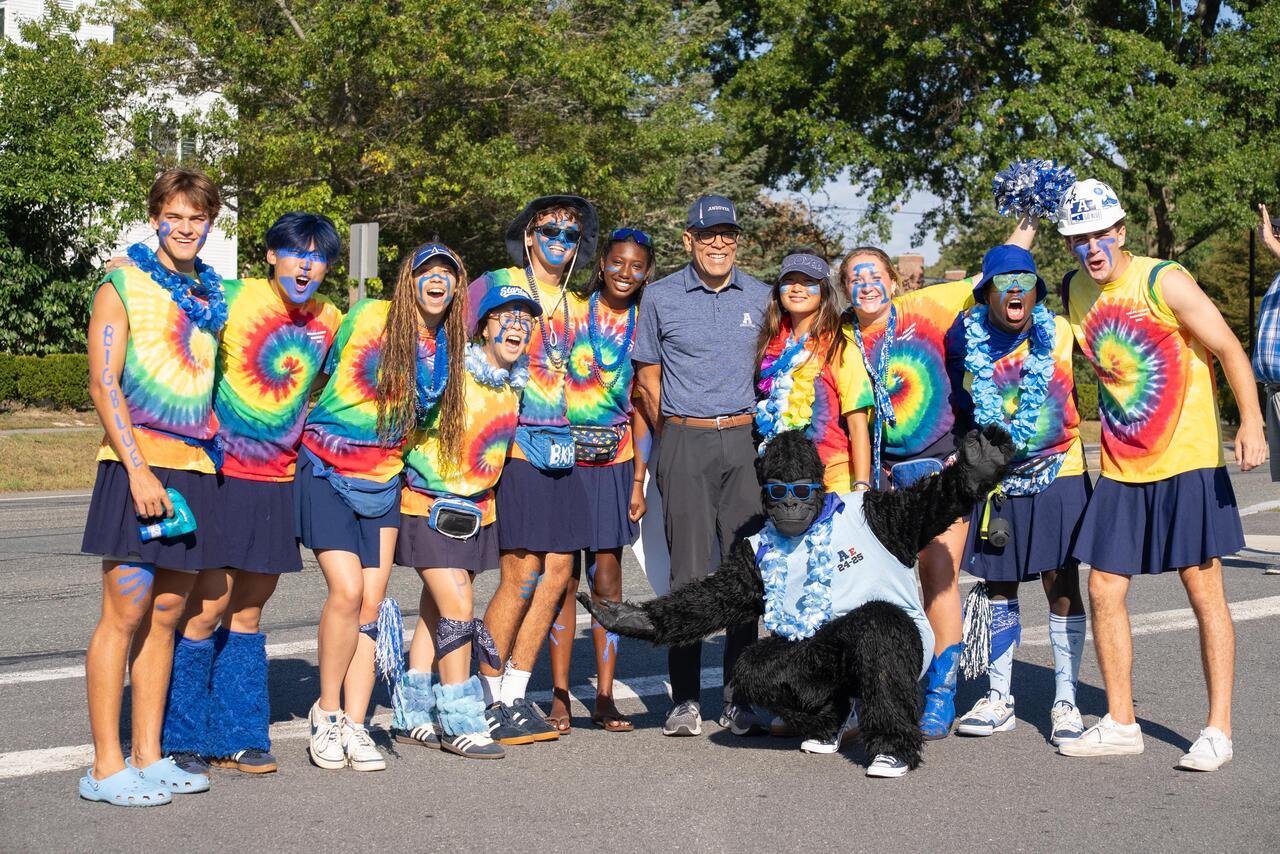 A Big Blue welcome! Head of School Raynard Kington joined Blue Key spirit leaders on Wednesday morning to greet new students and their families arriving for registration at the Snyder Center. A link to more photos and videos from this first week on campus will be provided in next week’s Family Bulletin.