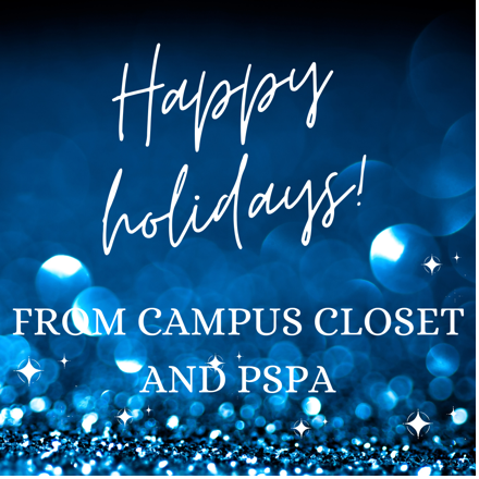 Campus Closet is closed for Winter Break: Note that our online shop is also on a well-deserved hiatus.